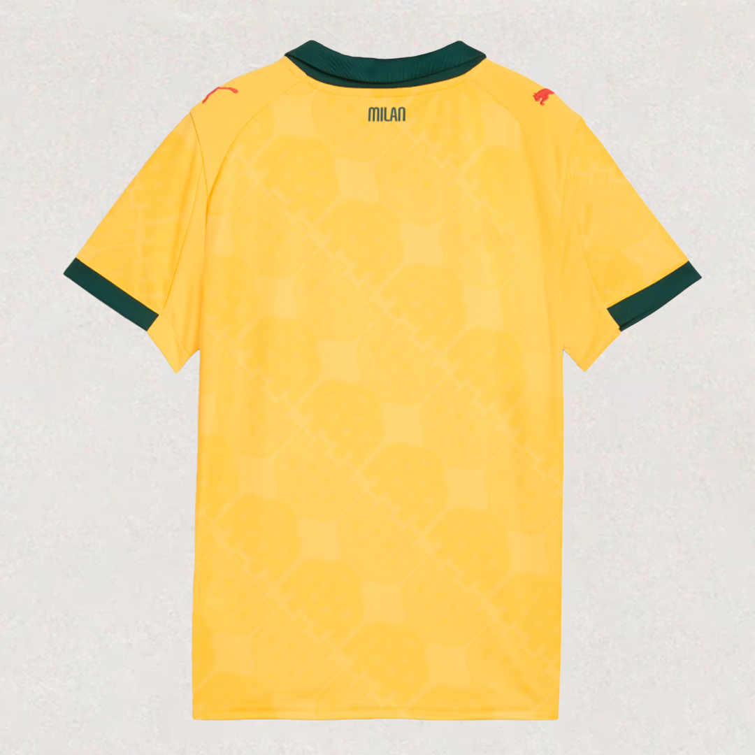 Upgrade your young fan’s football style with the AC Milan 2025/26 Third Jersey Kids, now available at Goal 90 Shop. Inspired by Milan’s world-famous fashion culture, this striking third kit shows that true style lives in the details. The iconic ACM monogram from the 1995/96 season is reimagined as a bold design feature, blending club heritage with modern creativity. Finished in a bright sunny yellow base with deep green accents, this jersey delivers a fresh, confident look that stands out on and off the pitch.