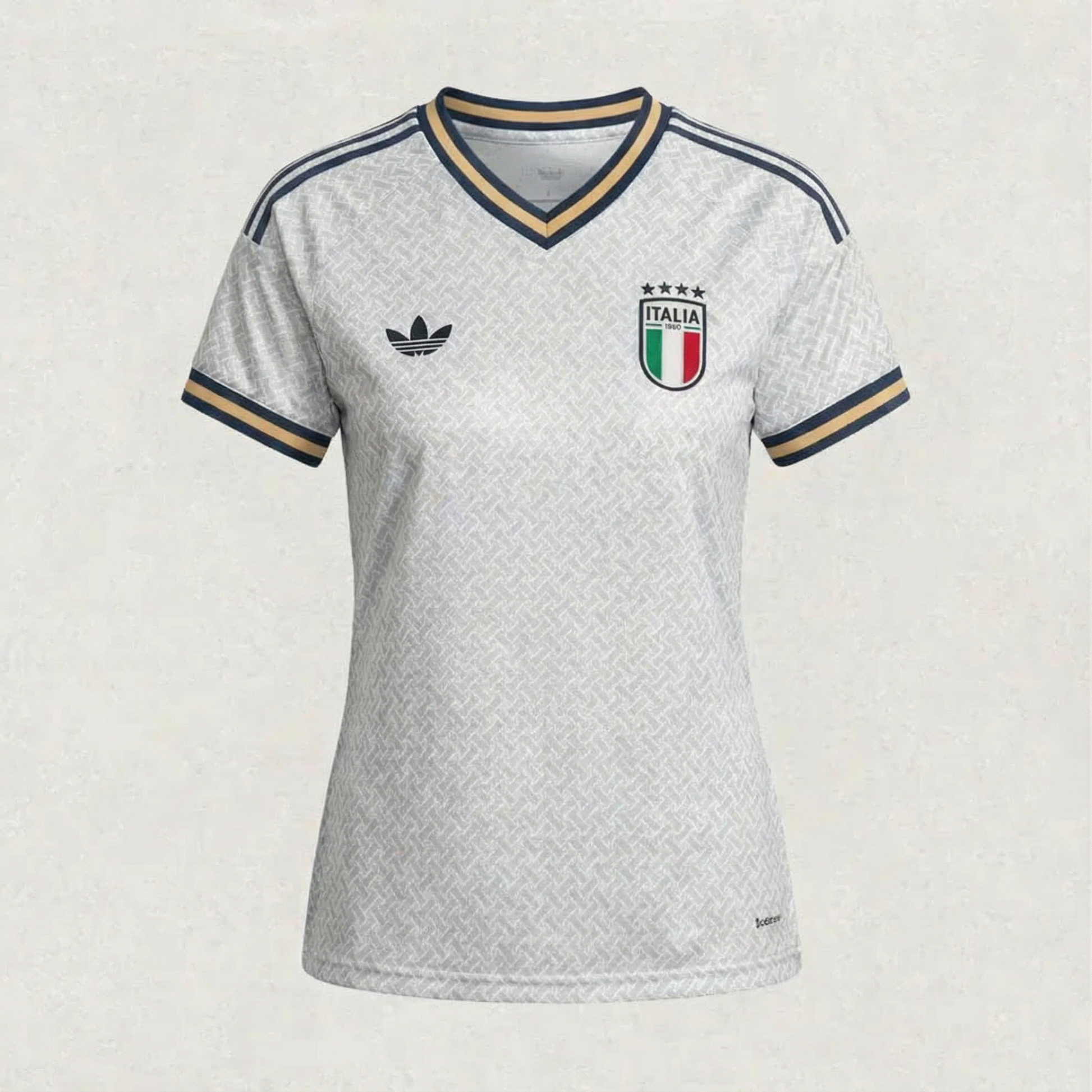 The Italy 2026 Away Jersey for women is a masterpiece of design, tradition, and performance, reflecting the elegance of Italian football. Featuring a clean white base with sophisticated blue and gold accents, this jersey celebrates Italy’s proud heritage while offering modern comfort and breathability. Crafted from premium lightweight fabric, it ensures top-level performance whether you are on the pitch or supporting the Azzurri from the stands.