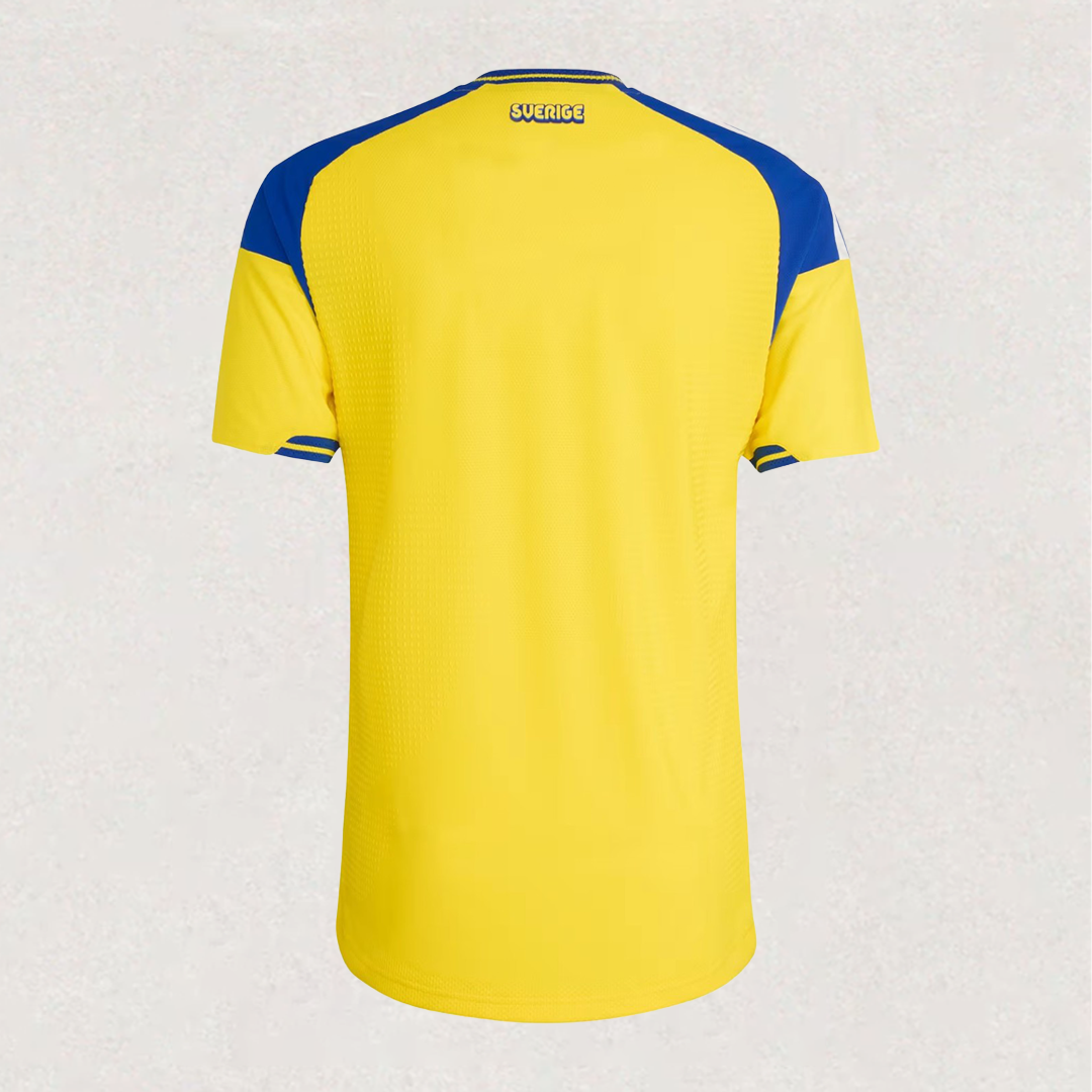 Elevate your young football fan's wardrobe with the Sweden 2026 Home Jersey Kids, now available at Goal 90 Shop. This kids' Sweden soccer jersey pays tribute to the nation’s football heritage, drawing inspiration from the iconic energy of the 1970s and the floral stitching found on traditional Swedish folk dresses. The distinctive graphic blends cultural history with a bold, modern look, finished with a heat-applied Swedish Football Federation crest.